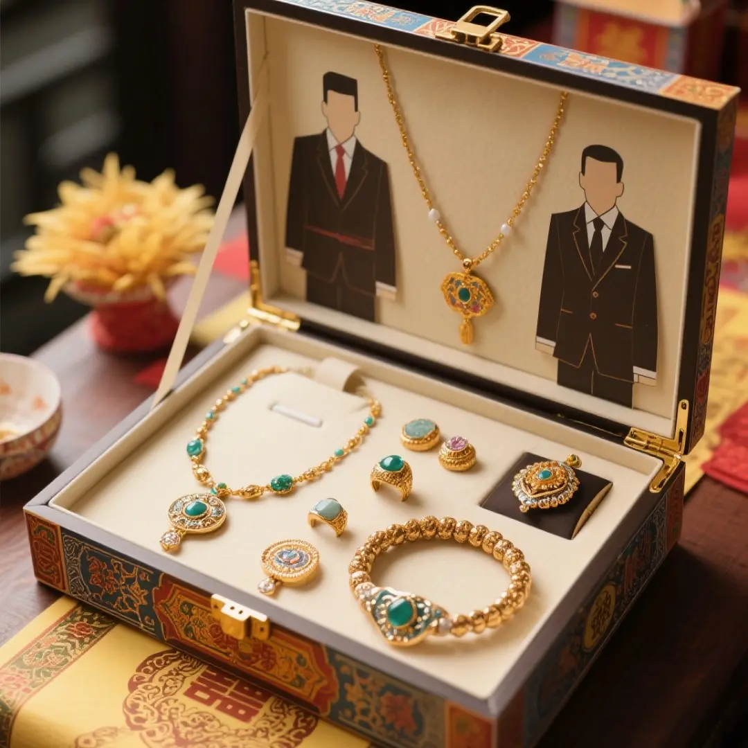 精緻紙扎工藝,模擬高檔男士首飾,包括領帶、袖扣、手錶等,做工精細,寓意先人在另一個世界也能風度翩翩。